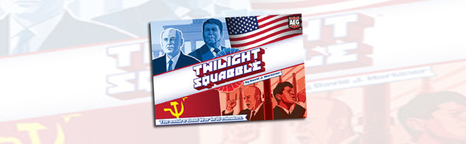 L’éditeur AEG a annoncé une petite folie tout droit sortie du chapeau pour avril 2016 ! Histoire de bien débuter l’année. Bon, on en sait encore peu, mais la news a le mérite d’être intrigante : Une version jeu de cartes micro légèrement parodique du fameux wargamme Twilight Struggle serait en préparation sous le nom de Twilight Squabble … 47 cartes, 9 petits cubes en bois et c’est tout, pour des parties de 10 minutes !