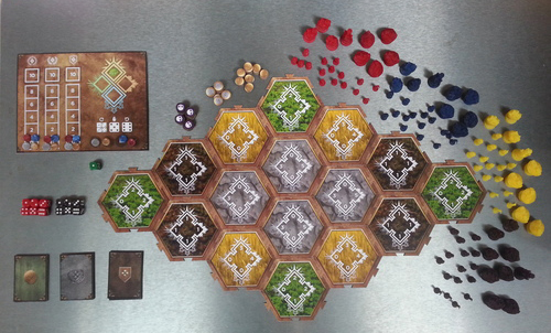 Chaque type de terrain (montagnes, marais, prairies et forêts) produit une quantité différente d’or selon les saisons. Les joueurs utilisent cet or pour former de nouvelles unités, construire et améliorer leurs colonies, expulser les commerçants rivaux et acheter des cartes qui pourront influencer le cours des événements en leur faveur…