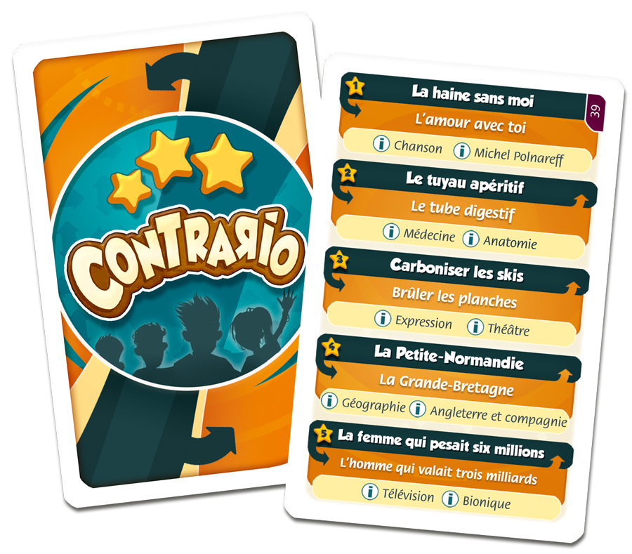 Pour se changer les idées sur la route, y a des idées chez Cocktails : Un petit Contrario peut vous divertir un temps. C’est un jeu où vous tirez une carte et donnez du fil à retordre aux autres participants en leur demandant de trouver l’expression antonyme à celle citée. Par exemple « réparer la vitre » ► l’expression à trouver est : « briser la glace ». C’est un coup à prendre, de réfléchir à l’envers ! Chez Cocktails games toujours, vous avez Devino, un jeu de questions-réponses atypique où la réponse se trouve dans le dernier mot de la question, il suffira de jouer avec les lettres pour la trouver. Par exemple : « Qui cette sorcière a t-elle fait cuire dans sa marmite ? » ► La réponse est son « mari ». Puisqu’on vous dit que la réponse est dans la question !