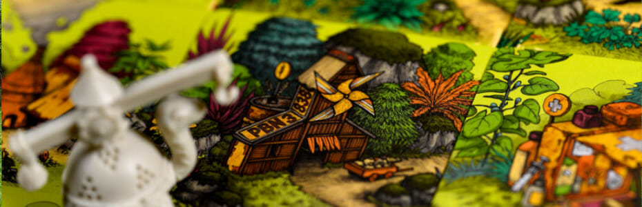 Par exemple, si une carte indique qu’il faut construire une centrale électrique, alors vous devez construire un bâtiment d’au moins trois étages sur un terrain central d’herbes jaunes. Quel intérêt ? Le premier qui réalise le projet gagne des points de victoire en fonction de la difficulté, pose un toit sur l’habitation qui lui a permis de valider le projet, et en dévoile un nouveau.