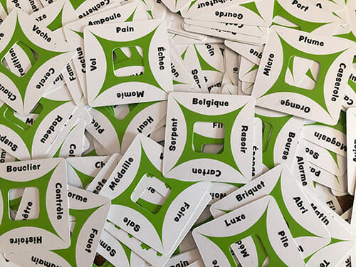 En général, au début, quand on découvre nos mots, et qu’on nous explique qu’il va falloir trouver un mot pour les associer alors qu’ils n’ont parfois rrrrrriiiiiiiieeeen à voir entre eux, on se dit que c’est impossible. On peut même coaguler du cerveau un instant. Ce fut mon cas. Car oui, vous pourrez avoir par exemple, « poire » et « escalade » côte à côte, ce qui signifie qu’il vous faut trouver un mot indice, qui à lui seul, pourra permettre à vos petits camarades de retrouver à la fois le mot « poire » et « escalade » (et ils feront ça parmi 20 mots).