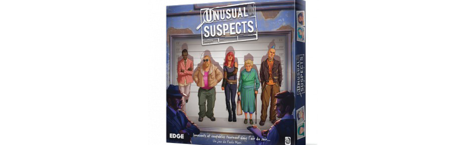 Unusual Suspects c’est un jeu originairement édité par Cranio, dont on vous a pas mal parlé au retour de la GenCon, d’ailleurs il faisait partie des titres en lice pour le meilleur party game 2015 aux USA, côté Golden Geek. Le ludochrono, l’interview GenCon et le Test sont à retrouver par ici.