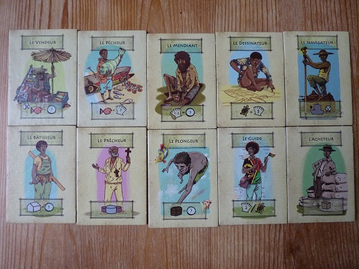 À l’ouverture de la boîte, on découvre un très joli matériel, de bonne qualité et prolifique. Les illustrations de Cédrick Le Bihan sont superbes et donnent du cachet à l’ensemble : ici, pas de couleurs criardes ou flashies. Et cela donne tout de suite le ton : on n’est pas venu dans les Vanuatu pour faire du tourisme ou pour profiter des paysages. Clairement pour moi, il s’agit du bon choix artistique qui tranche radicalement avec des jeux enclins à apporter de la bonne humeur autour de la table, comme Maka Bana par exemple, qui propose des dessins plus colorés. Du coup, je suis beaucoup moins enthousiaste quant au choix graphique de Quined Games pour la réédition du jeu : l’ensemble me paraît trop joyeux pour un jeu qui, comme nous le verrons par la suite, est diaboliquement méchant.