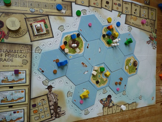 Vanuatu n’est clairement pas un jeu familial : si vous vous attendez à passer quelques instants magiques à lézarder sur la plage, passez votre chemin. Malgré le cadre paradisiaque, Vanuatu n’est pas un jeu où on se fait des amis : blocage, traîtrise, course aux ressources,… décidément ce jeu n’est pas de tout repos, et il vous sera impossible de perfectionner votre bronzage pendant les 1h30 à 2h00 de partie.