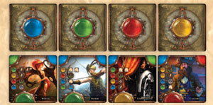 1. Phase d’enchère – qui servira à acquérir un des personnages disponibles. Comment ça joue ? Et bien, avec les gemmes. Oui, c’était pas juste pour avoir des jolis trucs qui brillent dans la main. Les joueurs vont donc choisir une gemme de couleur correspondante au personnage qu’ils guignent, gemme qu’ils mettent secrètement au creux de leur petite main. Et ensuite ? On révèle tout en ouvrant les poings.