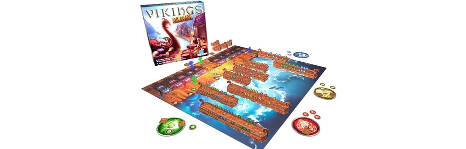 Vikings on Board est le prochain jeu gamer de Blue Orange. Alors, jeu gamer, oui, ça fait bizarre de la part de cet éditeur, mais ça fait partie de leur dynamique d’ouverture de marché ; leur idée est de produire un jeu familial + / gamer par année (pour une sortie Gencon aux US, puis Essen pour nous), en commençant par New York 1901 l’an dernier. Concernant celui-ci, je l’avais trouvé bon, bien aligné dans sa cible, accessible comme un Aventuriers du Rail.