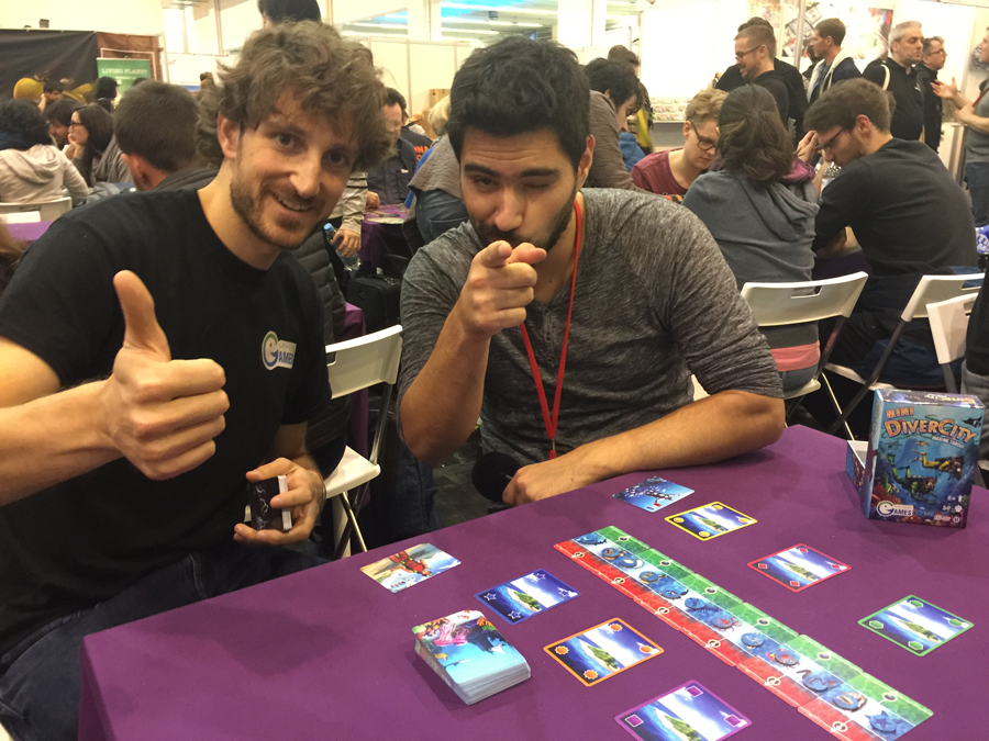 DiverCity est le deuxième jeu de l’auteur de Fourmidable. Il confie à la caméra ses ambitions de jeux écolo, et présente un jeu coopératif à l’ambiance océano-Hababi-esque. Assurément, à suivre.
