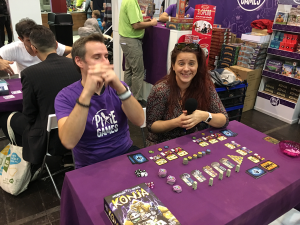 Aaron Haag, l’auteur de Yunnan, était là pour présenter Loot Island. Adorable auteur de jeu vicieux, Aaron nous présente un What’s your Game? léger mais qui ne manque pas d’interaction. Son credo ? Créer des jeux qui font qu’un choix de joueur impacte la table. Haag n’a pas peur de malmener ses joueurs et de créer des dilemmes signifiants. Sur le papier, waouw.