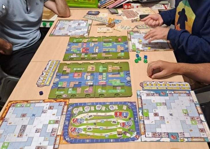 Pour l’interaction entre les joueurs, la comparaison entre les deux jeux donne un résultat assez équivalent, celle-ci étant assez réduite : le nombre de bandits d’un côté où il faut regarder un peu le plateau des autres, contre les objectifs de scoring de Planet Unknown tels que « celui qui a le plus de … » entre voisins de droite et de gauche, et changeant à chaque partie. Dans les deux jeux, l’expérience est plutôt solitaire, car on ne choisit pas les tuiles pour bloquer les autres joueurs, mais pour optimiser son plateau personnel. Match nul pour le point « interaction entre joueurs ».