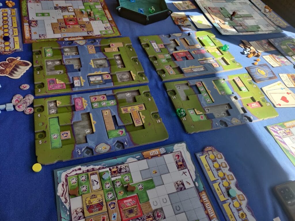 La comparaison avec Planet Unknown (le test ici), autre emblématique jeu de pose de polyominos et nommé au Spiel des Jahres 2023, est inévitable. Deux jeux de pose de tuiles où chaque joueur construit son petit espace dans des univers distincts : Colonisation d’une planète à ma droite, et d’une région du Far West à ma gauche. Les similitudes sont nombreuses, les différences aussi.