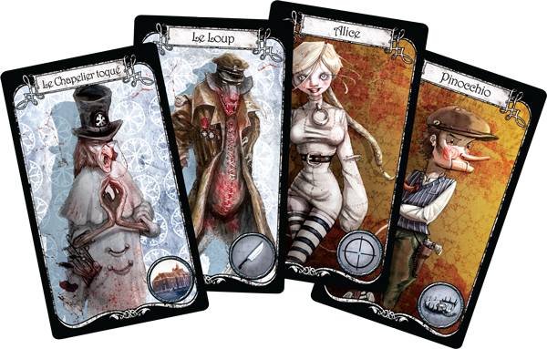 Comme je vous l'ai annoncé plus haut, le plateau propose plusieurs types d'endroits. Nous avons en fait devant nous la cité de Villegivre avec ses différents emplacements et ses chemins. Sur le verso de votre aide de jeu, vous avez une présentation avec un petit background de la ville. Du Parc aux chênes à la Foire aux merveilles en passant par le Théâtre de marionnettes ou l'Usine de cauchemars, vous pouvez faire le tour de Villegive et de ses 8 spots singulièrement évocateurs.