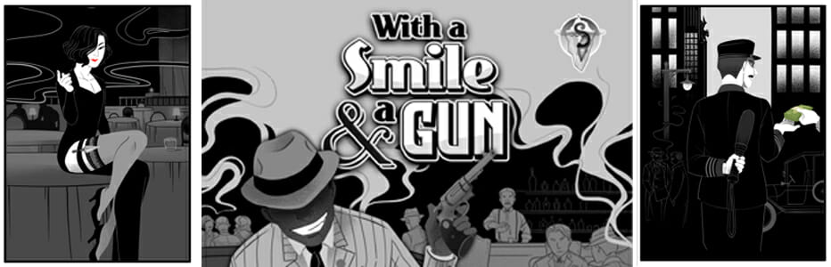 With a smile & a gun est un jeu stratégique pour deux joueur·euse·s qui vont s’affronter en 30 minutes. Le but ? Prendre le contrôle du quartier avec ses hommes de mains, ses casinos, sa drogue, et son alcool. Les participant·e·s pourront tirer partie de la police qui viendra contrecarrer leurs plans.