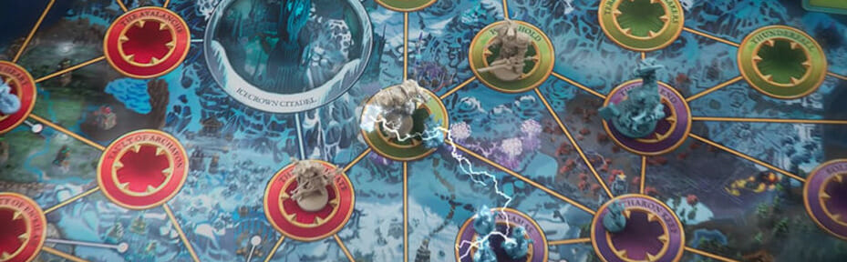 Après le succès du cross-over Small World of Warcraft (notre article), WoW n’a pas dit son dernier mot sur nos tablées. Ce Wrath of the Lich King s’inspire plus précisément de l’extension du jeu PC du même nom. Chaque joueur y choisit un héros avec sa figurine en plastique et part combattre le Fléau avant d’affronter le roi-liche Arthas Menethil, chacun ayant ses propres capacités allant d’une armure supplémentaire à la capacité de se téléporter ou d’attaquer des espaces adjacents.