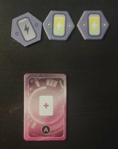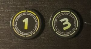Le public visé est familial, il est donc important que les règles soient limpides (ceci dit, les joueurs confirmés méritent aussi des livrets de règles compréhensibles). Quoi qu’il en soit, ici c’est le cas. Elles sont même agrémentées de quelques conseils stratégiques. Les illustrations des planètes sont réussies, même si la première fois on a un doute sur la nature du gros astre jaune (c’est un soleil, et donc pas une planète où il faudra déposer des passagers). Je trouve que les couleurs des pions vortex ne sont pas assez tranchées. On peut confondre le rouge et le violet, de même pour le jaune et le vert. La lecture sur le plateau est parfois trompeuse. Par contre l’éditeur a prévu des tuiles pour tenir le compte de nos actions dépensées. En effet, puisqu’on a aussi droit à des actions gratuites, il peut arriver de perdre le fil du nombre de mouvements payants qu’on a réalisés.