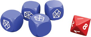 Le hic, c’est qu’il n’y a que deux succès indiqués sur chaque dé. Ainsi, vous êtes susceptibles d’avoir besoin de lancer plusieurs fois pour réussir, et c’est là que le côté push-your-luck du jeu entre en scène.