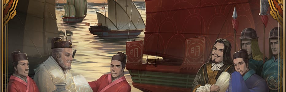 Yinzi Ming comme son nom l’indique, se déroule sous la dynastie Ming, une grande période d’expansion de la Chine où celle-ci s’est ouverte au marché. Nous allons produire et vendre des biens durant quatre manches, construire nos manufactures pour y produire des vases, de la soie, etc, que nous exporterons en Europe par bateau ou sur des caravanes. Voilà en gros pour le principe du jeu.