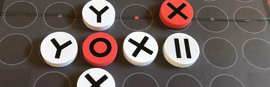 YOXII se présente sous la forme d’un plateau de 37 cases, un totem au centre, que chacun va déplacer à son tour sur une case libre autour, avant de placer l’un de ses pions O, II, Y ou X adjacent au totem. Quand le totem ne peut plus être déplacé, la partie prend fin. On compte alors les forces en majorité dans chaque camp autour du totem. Le rouge ou le blanc l’emporte, en fonction des jetons présents :