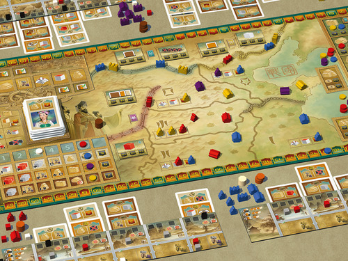 >> L’action Loi : vous placez la carte dans la zone Tribunal du plateau sur un des 6 emplacements (on les empile face visible), engendrant une des 6 actions possible à savoir, prenez un carnet et un stylo : construire un mur, un palais, embaucher un ouvrier, un fonctionnaire, réassigner les fonctionnaires, ou installer un gouverneur. Là, il n’y a pas besoin de faire gaffe aux couleurs de vos cartes, elles peuvent toutes aller partout, elles sont libres, y en a même qui disent qu’ils les ont vu voler. En plus, après avoir fait l’action correspondante, le joueur actif peut déclencher l’action décrite sur la carte elle-même, pour obtenir des bonus.