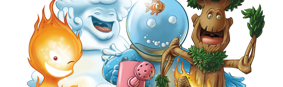 C’est un jeu de cartes rigolo qui se joue par équipe. Il a un faux air du Kem’s et une touche de Quarto inside (à lire : notre article sur Quarto). Y a pire, niveau références. La maison d’édition s’appelle Elements, c’est peut-être pour ça qu’on voit les 4 éléments sur leur jeu. Je dis ça je dis rien.