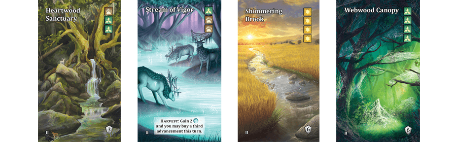 Vous ne serez pas en mesure d’acheter des cartes « vallée » lors de vos premiers tours car vous avez besoin d’avoir des symboles « esprit » et aucune de vos cartes de départ en possèdent.