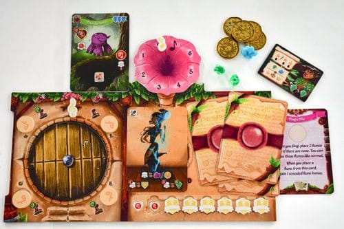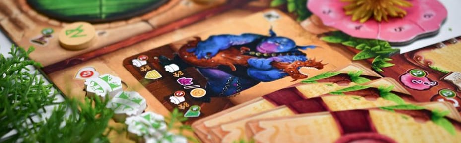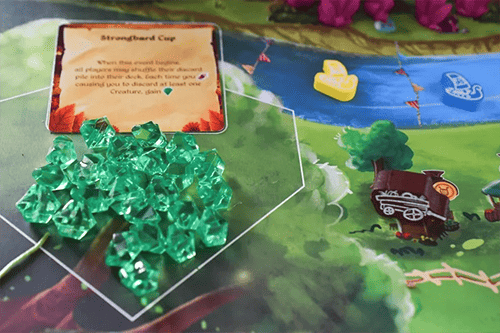 Sur le plateau de jeu, vous trouverez deux réserves de gemmes vertes, chacune associée à un événement ou à une condition spécifique qui vous permettra d’en obtenir davantage, en plus de celles acquises par d’autres moyens. Il existe une variété d’événements dans la boîte de base, avec des extensions incluses que vous pourrez ajouter selon votre préférence.