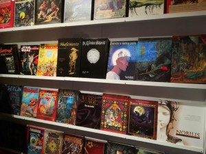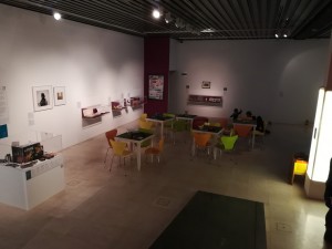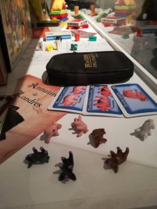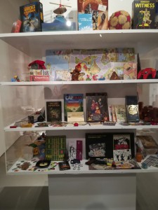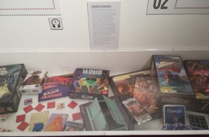 - Et bien sûr de nombreux jeux exposés : du traditionnel et du moderne, avec explications sur la conception des jeux, et notamment un focus très intéressant sur 7Wonders, mais aussi du jeu de rôle, des jeux tout à fait polémiques et représentatifs de nos sociétés : un clone du Loup-garous de Thiercelleux avec des migrants et des infiltrés de la préfecture (glaçant, rien qu’à l’écrire), un jeu des 8 familles avec une famille de 2 papas et un enfant handicapé… et une pléthore d’autres titres à découvrir.