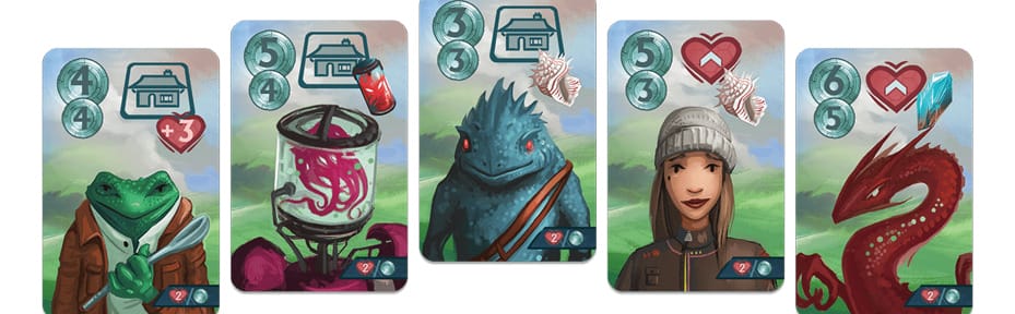 Une fois que vous aurez érigé quelques bâtiments, vous tâcherez d’y placer des villageois pour augmenter la production en fin de tour. Dans votre stratégie, vous devez choisir où et quoi construire dans l’idée d’obtenir les meilleures récompenses dans une planification long terme. Par exemple, sachez que si les joueurs parviennent à remplir leur ville en complétant une rangée complète sur leur plateau, ils obtiendront des points de victoire supplémentaires à la fin de la partie.